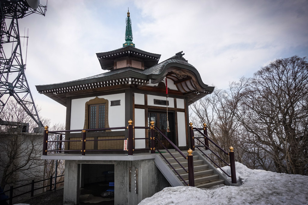45. Здесь туристический центр со смотровой площадкой, а рядом стоит небольшой храм, построенный на бетонном основании. Вообще религиозных зданий в Саппоро совсем немного.