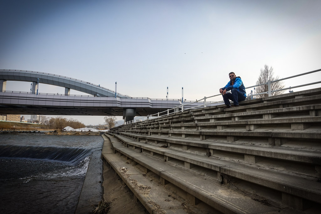 20. Если в Киото милая, уютная набережная, то здесь огромное и неуютное пустое пространство. Здесь не очень много деревьев, а лестницы и дороги явно переживают не лучшие дни. Более того, по обеим берегам реки проходят трассы, которые надо перебегать, чтоб выйти к реке. Видно городские власти пытались таким образом предупредить посетителя, что на набережную лучше не соваться.