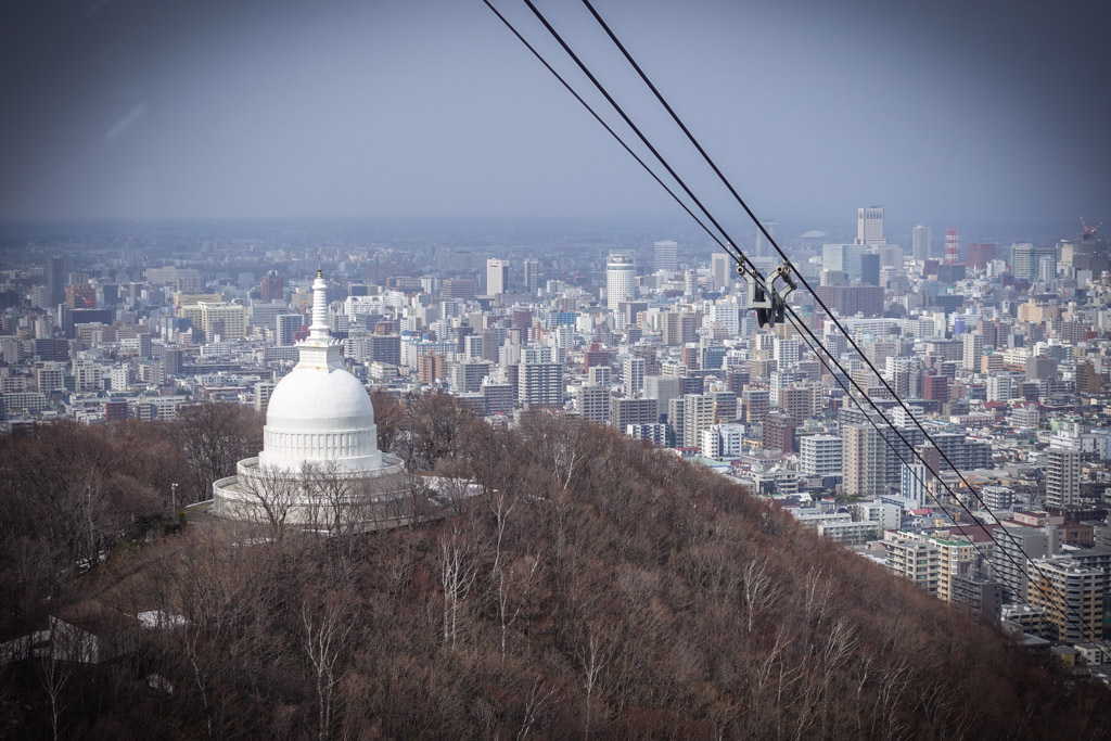 40. Вообще зимой люди приезжают в Саппоро для того, чтоб кататься на лыжах. В окрестностях города есть много гор с лыжными курортами. Туда мы не поехали, но решили забраться на сравнительно небольшую гору недалеко от центра города.