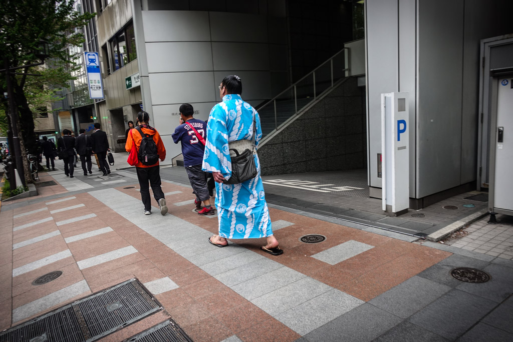 37. Ещё несколько кварталов, в толпе нам попадались толстяки в халатах, с клубком на затылке. По правилам сумо, профессиональный борец должен одеваться подобающе даже вне-рабочее время.