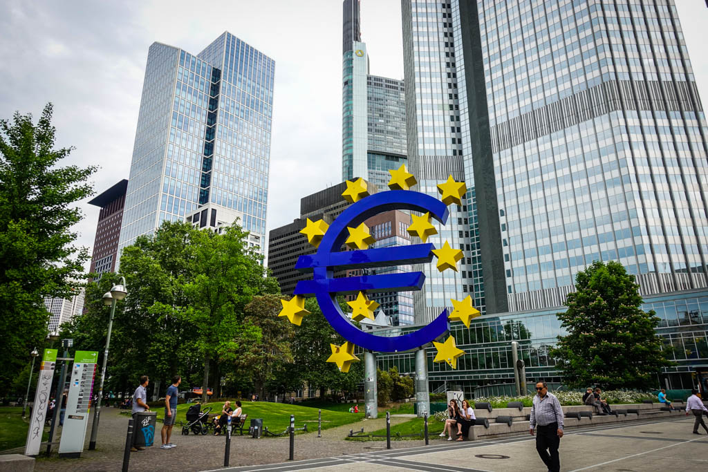 8. Одно из этих высотных зданий - бывшая штаб-квартира Европейского Центробанка, который контролирует оборот евро. В 2015 штаб-квартира официально переехала в другой небоскрёб во Франкфурте, но на старом месте осталась знаменитая скульптура в форме знака евро со звёздами - символ банка.