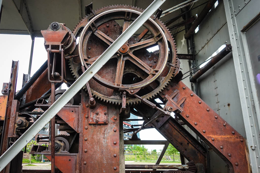 35. Подальше от центра набережная принимает некий пост-индустриальный вид. Я бы сам не додумался туда дойти, хорошо, подруга подсказала! Здесь возле берега реки стоят старые маханические краны с ковшами для разгрузки сыпучих грузов. (Я сначала даже подумал, что это какие-то экскаваторы!)