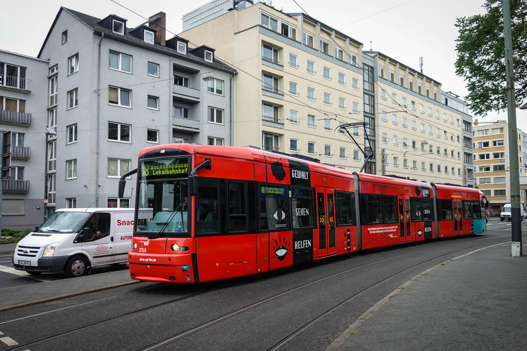 34. Трамвай во Франкфурте до сих пор ходит. Это длинные, низкополые составы, сделанные, как правило из трёх секций.