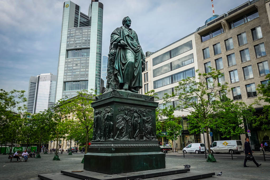 10. Франкфурт - не только родина сосисок. Ещё Гёте здесь родился. Ему в центре, между небоскрёбов, стоит памятник.