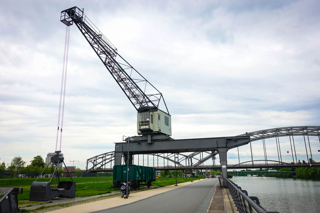 37. Вот более солидный кран. Очевидно, раньше они перегружали что-то с поездов на палубы грузовых баржей, сплавлявшихся по Майну.