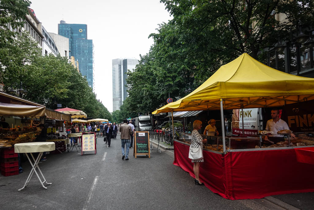 3. Проходим всего один квартал, и становится приятней - тут улица занята лотками с едой, немцы из окрестных офисов приходят сюда на обеденный перерыв.