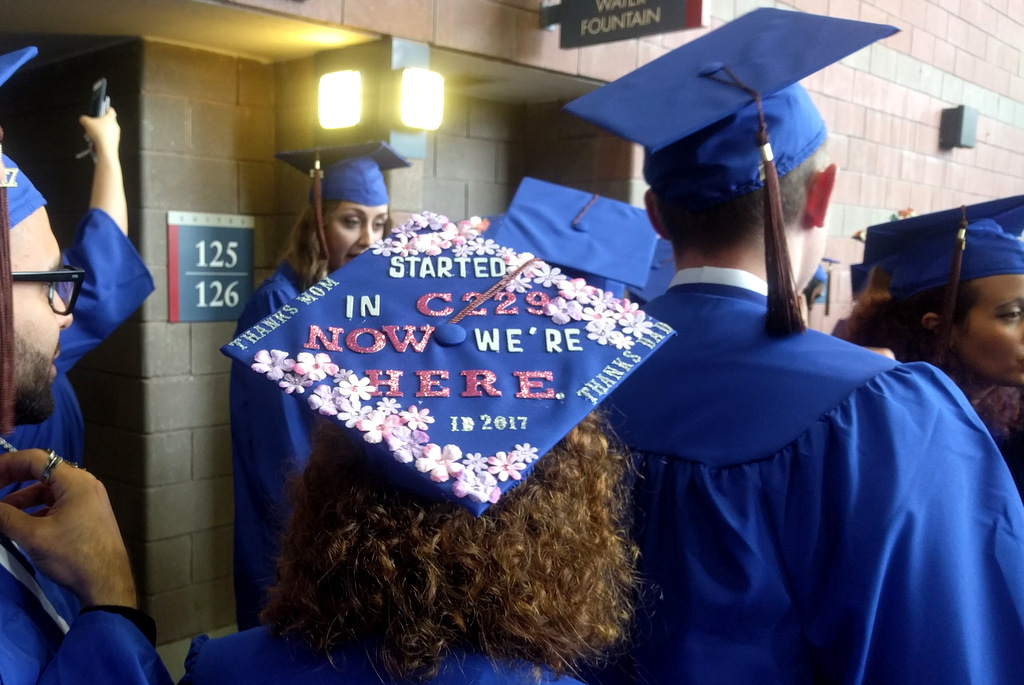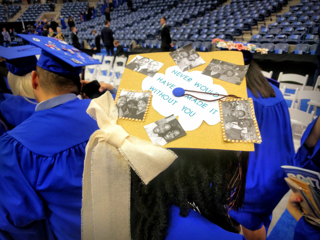 14. Многие на шапочках вспоминали друзей и родственников, которое помогли им в студенческой карьере.