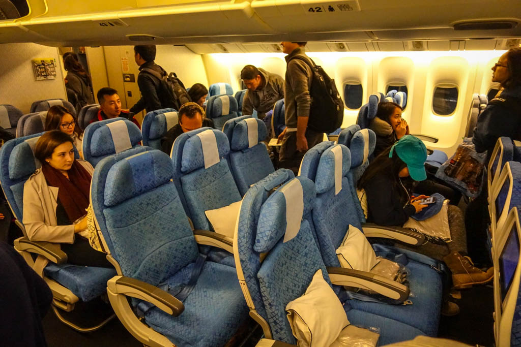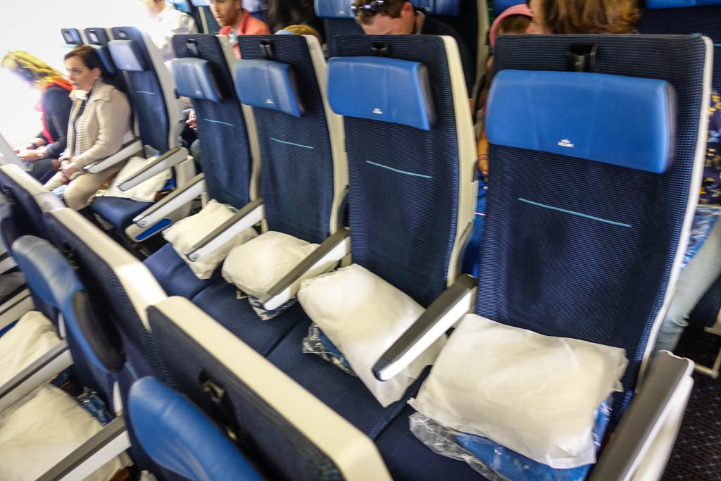 И вот, посадка. Я задержался в лаундже (у KLM, кем я летел, в Амстердаме неплохой зал), и зашёл на борт самолёта незадолго до закрытия дверей. Что же я вижу? Мой ряд, абсолютно пустой! На четырёх одинаковых креслах подряд, аккуратно сложенные одеяла и подушки ждут ребят! То есть меня!