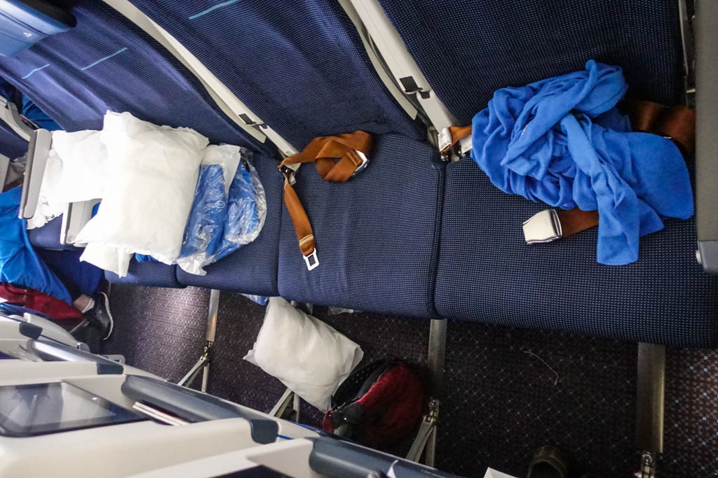У меня есть множество хитростей, которыми я пользуюсь, выбирая сидения перед полётом, и всё равно целый ряд удаётся захватить от силы пару раз в году. Но его мало захватить, надо его ещё уметь удержать! Вот тут у меня недавно чуть не случился провал.