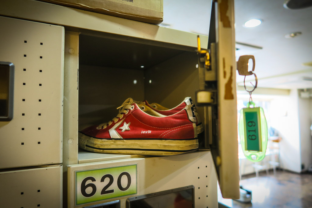 Назавтра весь этот процесс придётся вспять повторять: душ, зубы, переодевалка, локер, обмен шкафного ключа на обувной, выхватываю кеды, и спокойно можно идти гулять по Токио.