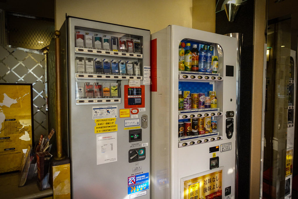 11. Прежде чем туда подняться, самое время оглядеться, что же тут есть возле ресепшена. Есть стандартный для Японии автомат с напитками, и чуть менее стандартный с сигаретами.