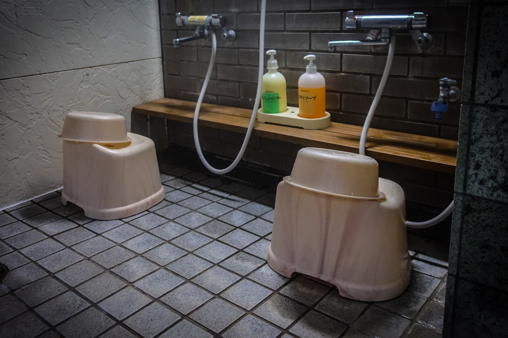 21. Сам онсен снимать не стал - в нём полно голых мужиков абсолютно разных мастей. Но рядом вот такие душевые станции. Садишься на табуреточку, и поливаешь себя, мылишь, растираешь, бреешься. Каждый человек обязан помыться перед тем, как лезть в воду онсена.