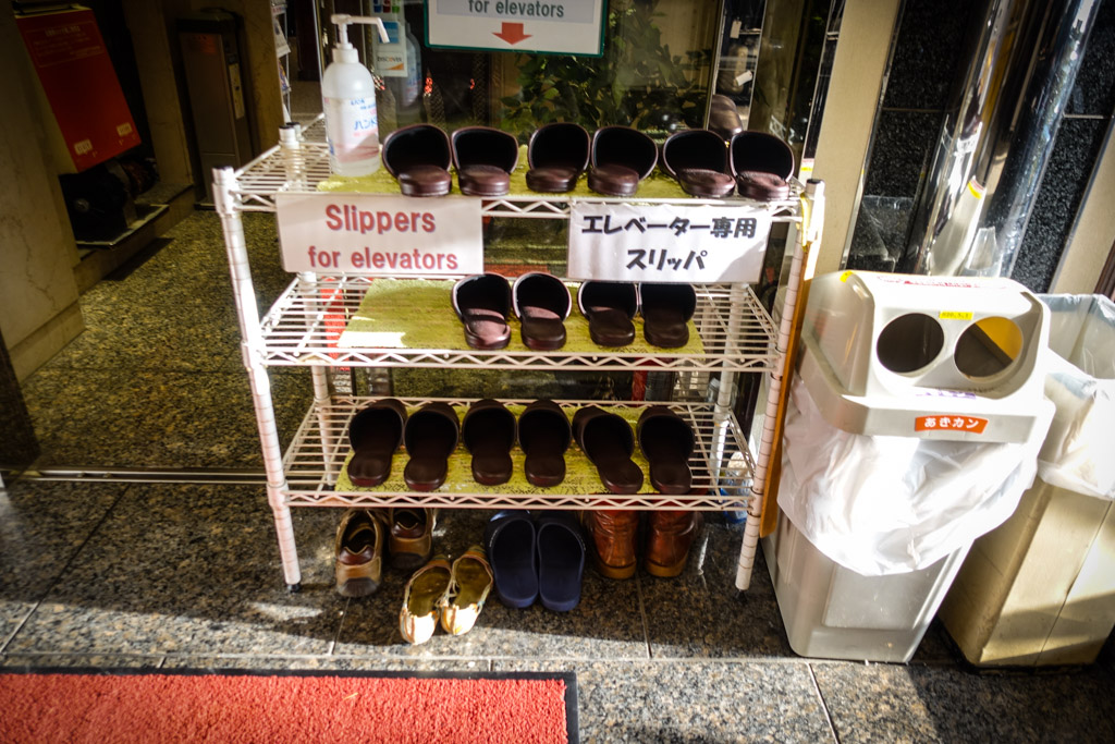 6. Тут же стоят тапочки, но внутри отеля нельзя ходить и в них. Надпись объясняет, что это тапочки только для езды в лифте между этажами. Ну, про то, что у японцев к тапочкам особое отношение мы с вами уже говорили.