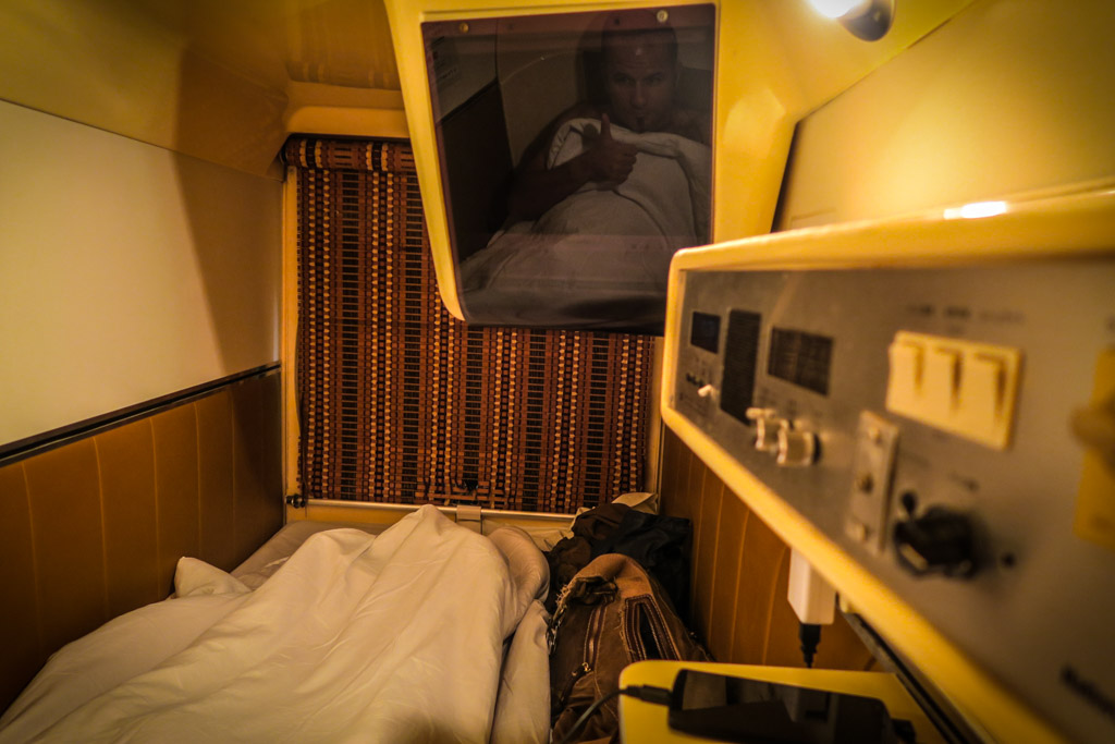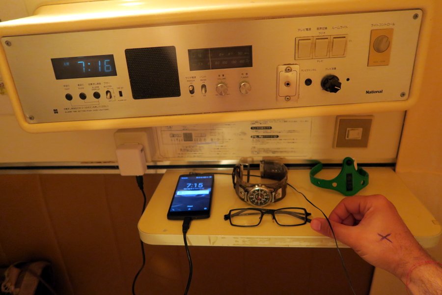 30. Но уже поздно, а завра ранний подъём. Короче, пора мне спать. В капсуле есть розетка, можно поставить на зарядку все девайсы. А вместо двери тут плотная шторка, которая опускается и загораживает вас от других любопытных гостей. Зато она пропускает воздух, позволяя вам не задохнуться за ночь в капсуле.