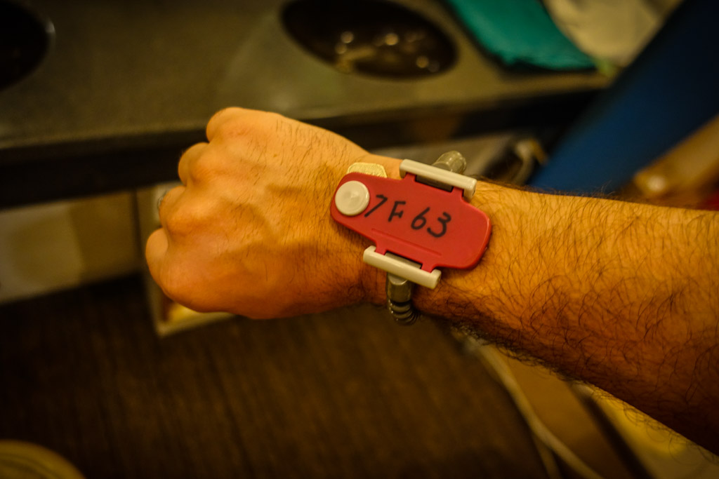 10. Вот он, на пластмассовом браслетике, чтоб не потерять в баньке. Мой номер 7F63, это значит моя капсула на седьмом этаже. Саму капсулу ключ не открывает, он только для локера, где я оставлю вещи, ну и чтоб в случае чего, персонал знал, за какой номер у меня заплачено.