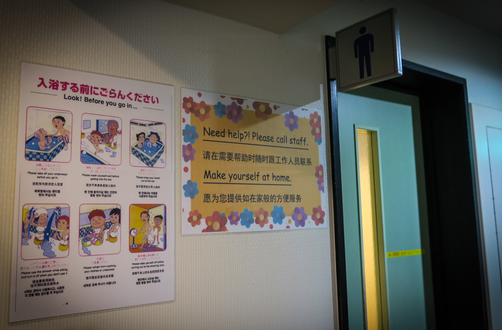 20. Но если вам нужен душ, то для этого пройдём в онсен. Перед входом инструкция к употреблению для японцев и гайдзинов. Рассказывают как правильно сидеть в онсене.