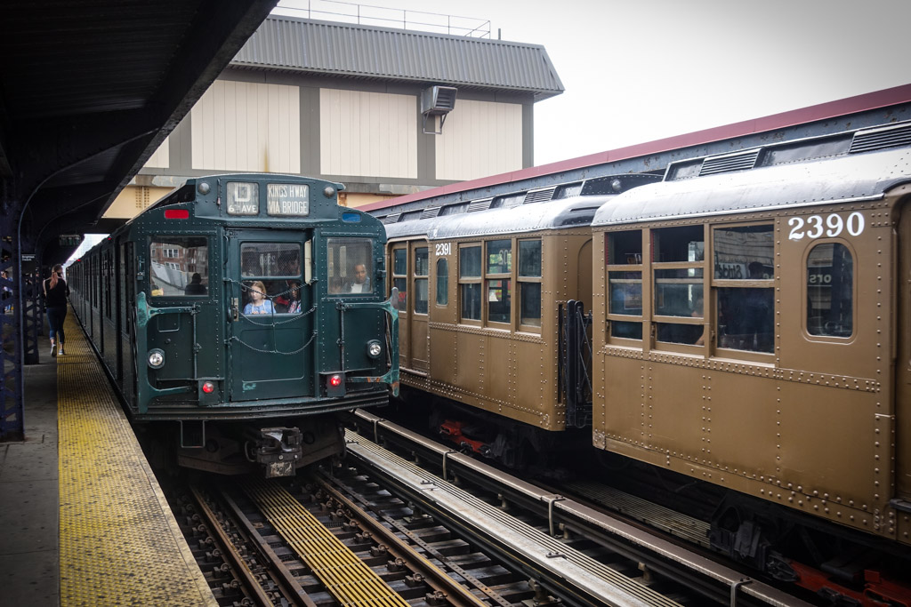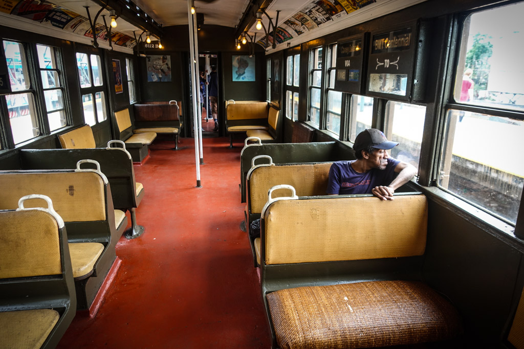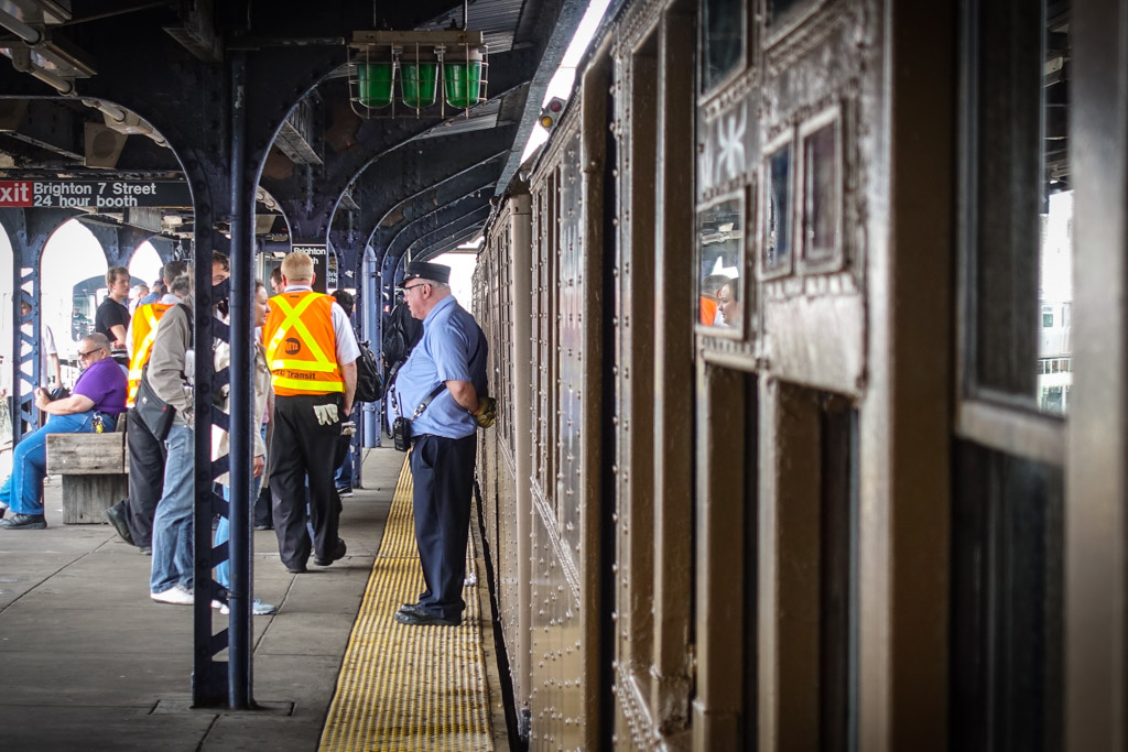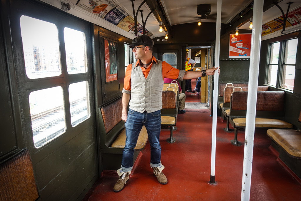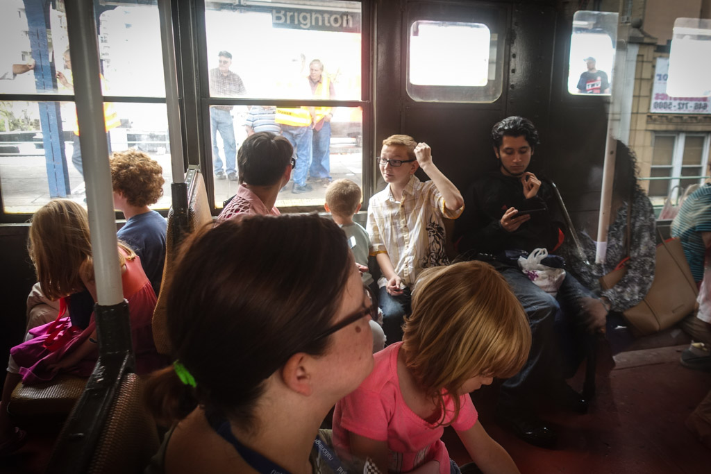 11. Впрочем фотографы фотографами, а народ приехал покататься на старом метро. Все набивались в вагоны. В отличие от Манхэттена, разодетых хипстеров было немного, так что зря я наверное жилетку напялил. Много народу с детьми было.