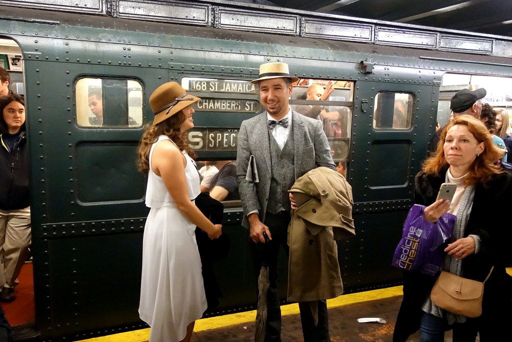 Всего полгода назад я попал на подобное мероприятие в Манхэттене. Там правда был всего один состав из нескольких разных вагонов, зато посетители были разодеты в винтажные костюмы 1920х - 1940х годов.