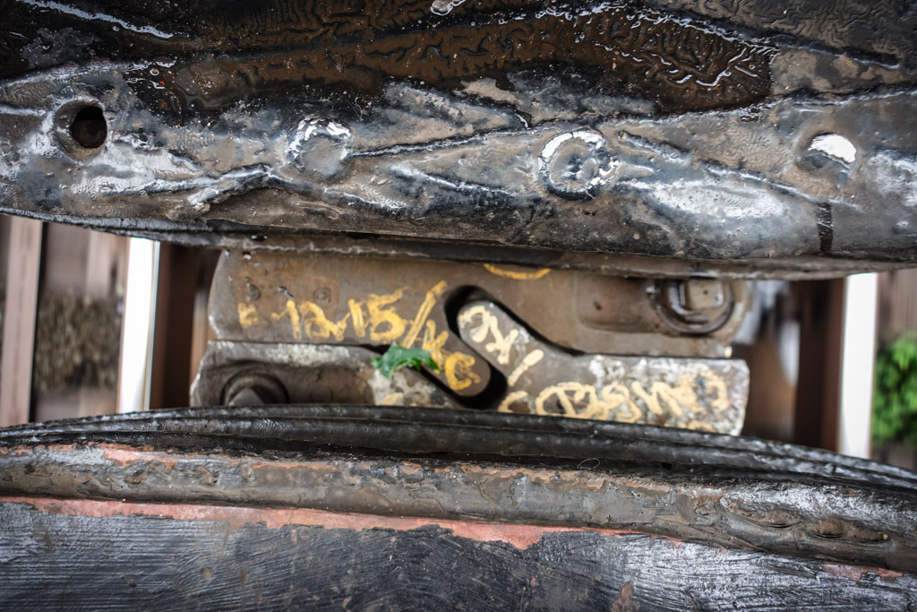 23. Но не все соединения "на улице". Поезда D-Type компоновались из кусочков по два спаренных вагона. Между собой эти вагоны соединялись вот таким переходом на шарнире: