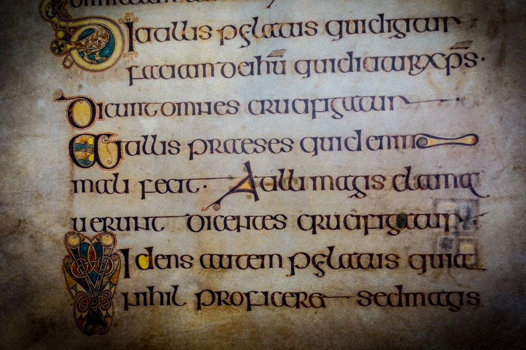 8. Келльская Книга состоит из 340 страниц пергамента, разукрашенного невероятно детально и вычурно. Здесь богатые картинки с удивительным уровнем детализации. Видно, что мастера очень старательно работали над созданием книги. В сокровищнице библиотеки, куда можно пройти по билетам (но где нельзя фотографировать) напоказ выложены два разворота книги. Один - с картинкой, а другой с простой страницей текста. Страницы периодически меняют. Скорее всего библию не использовали для богослужения, уж слишком она нарядная и богатая. Считается, что книга держалась "напоказ". Её картинки исполнены с помощью огромной палитры цветов, включая голубую краску, скорее всего привезённую из Афганистана.