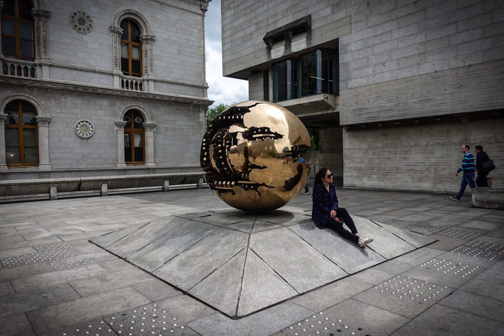 3. Это место, где приятно просто погулять - старые здание сочетаются здесь с современным искусством. Как вам такой шар? Эта скульптура называется "Сфера в Сфере", её автор - итальянец Арнальдо Помодоро. Разные версии такой штуки разбросаны по всему миру: в Ватикане, в Израиле, в Иране, и даже у нас в Нью Йорке, возле здания ООН.