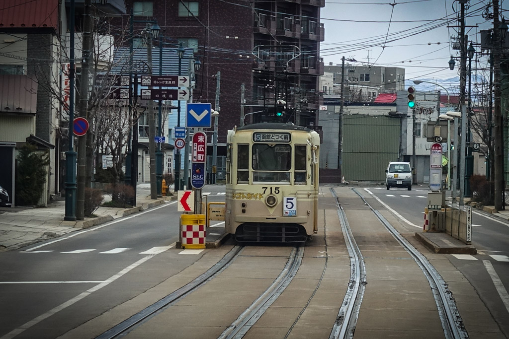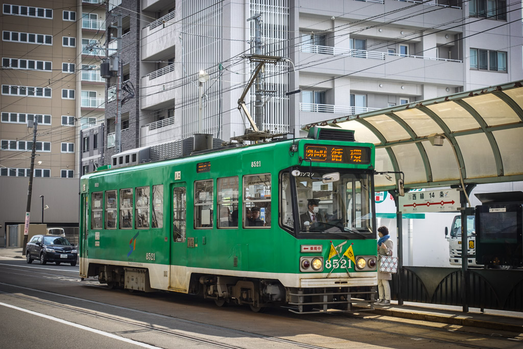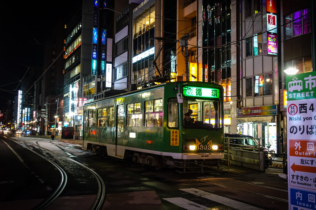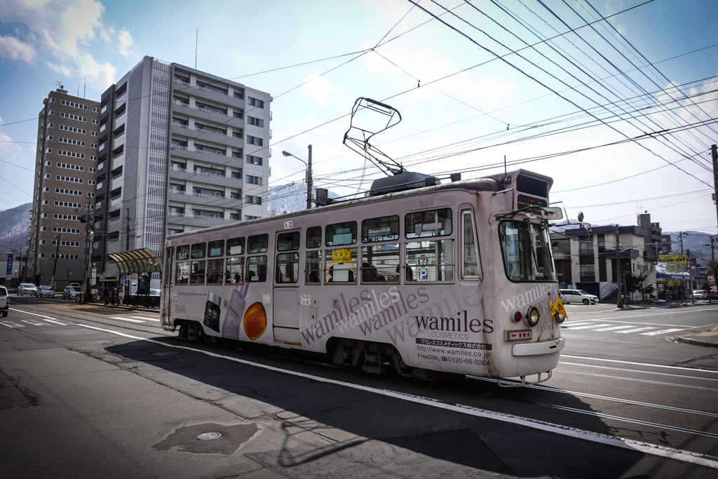 А вот если мы перенесёмся на север страны, в Саппоро на острове Хоккайдо, то там мы найдём самый настоящий трамвай!Не секрет, что Саппоро мне не очень понравился. В городе я видел какую-то запущенность, которой не наблюдал нигде больше в Японии. Например это единственное место в стране, где я видел разбитые тротуары. Однако с трамваями тут всё нормально. Действует несколько линий, по которым ходят вполне себе симпатичные вагончики.