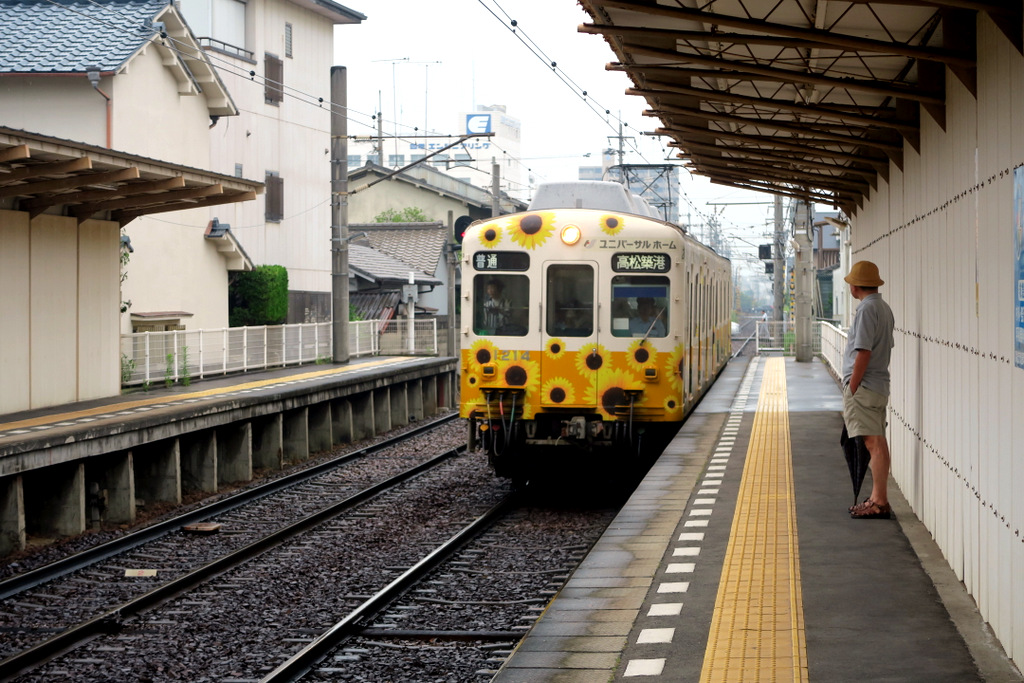 Такамацу находится на острове Сикоку. Я включаю его сюда для полноты картины. Местные "трамваи" как раз то, на что я жаловался в прошлый раз. Они больше походят на метро с одним вагоном. Ходят по совсем отдельным рельсам, остановки у них с высокими перронами.Переходы через эти рельсы контролируются шлагбаумами. Так что, да, в Такамацу такие же недотрамваи как в Токио и Киото.