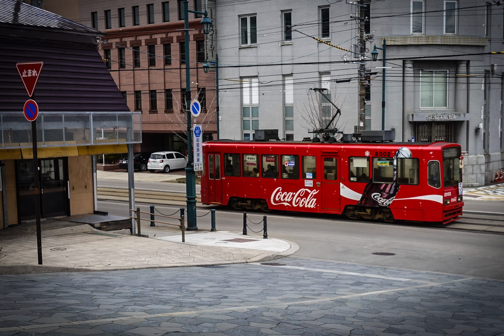 На том же острове Хоккайдо есть ещё городок Хакодате, он находится на самом юге. Я попал сюда проездом, во времякрасивой дороги из Токио в Саппоро. Удивительно, но и в этом городке есть трамваи! (На самом деле в Хакодате живёт более четверти миллиона человек.)Яркая реклама Кока-Колы на этом трамвае почему-то очень гармонично вписывается в серый портовый город.