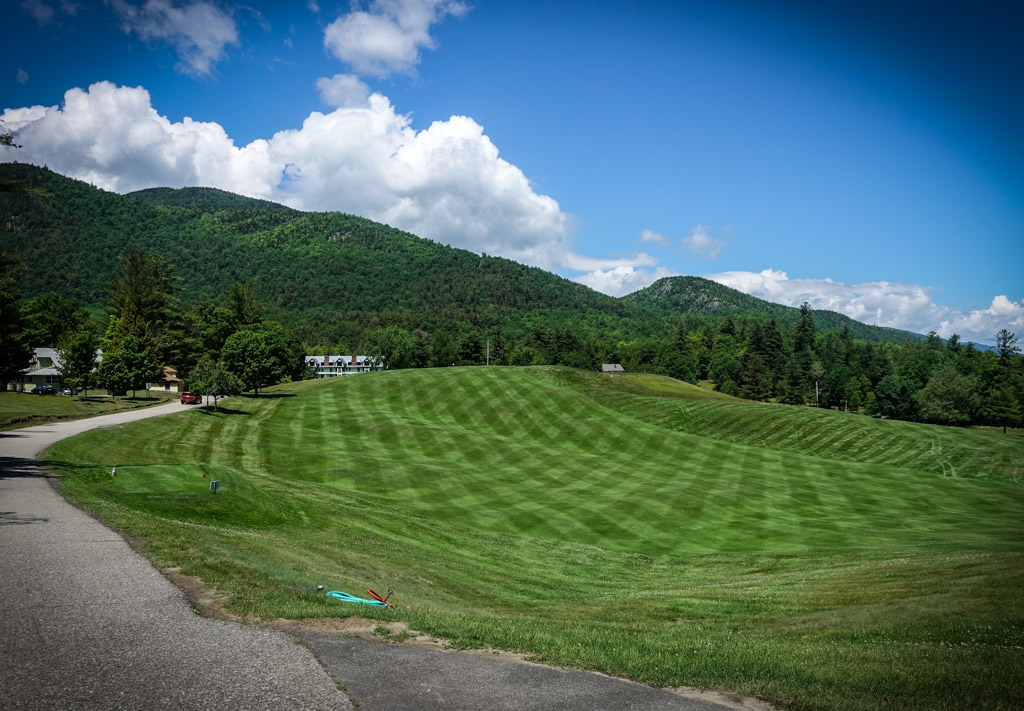 3. Сначала дорога лежит мимо площадки для гольфа. Тут играют какие-то богачи. Газоны аккуратно подстрижены в клеточку, которая подчёркивает мягкую холмистость местности. Похоже на какую-то видеоигру.