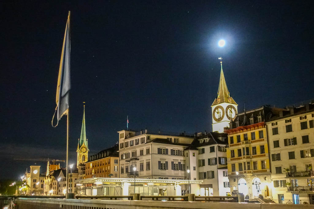 Так как дата довольно солидная, мы решили отмечать её по звону знаменитых башенных часов Цюриха. К счастью тут огромные часы на каждом шагу, включая те, у которых крупнейший циферблат из всех церковных часов Европы.
