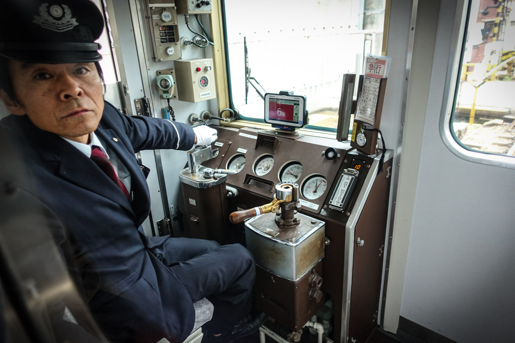 7. Я тоже люблю. Вот поворачивается машинист взглянуть через плечо, а там стою я со своей мыльницей! Это я ждал, чтоб он пальцем на что-нибудь показал, для поста про Шиса Канко. Очень он удивился.