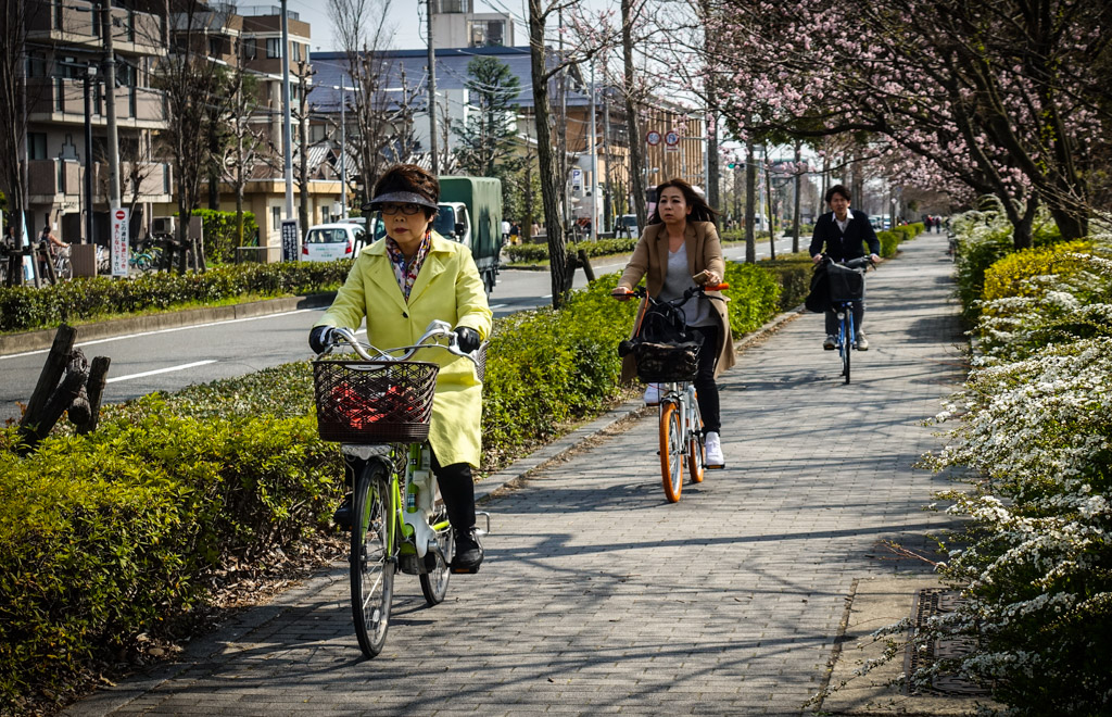 4. Велосипедисты катят вдоль реки Камо в центре города.