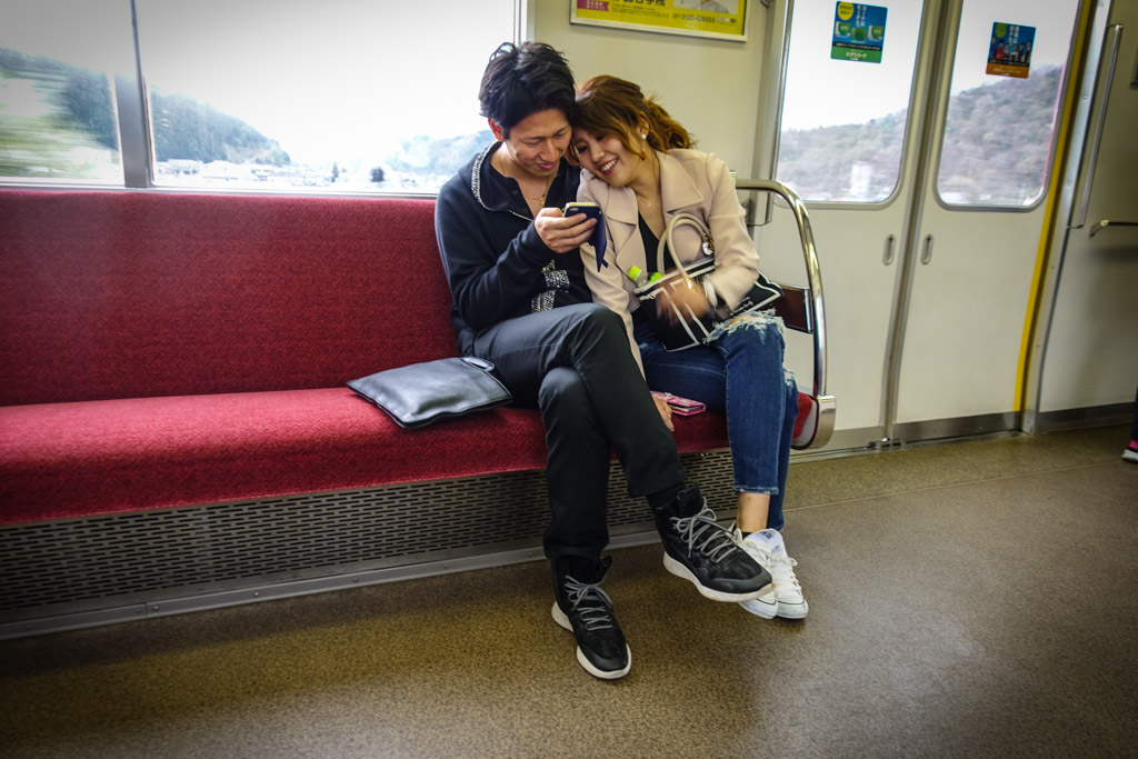 8. Как и везде, здесь любят тупить в мобильники пока едут на поездах. Разговаривать по телефону в вагоне у японцев не принято, зато смотреть видео, или вести переписку - абсолютно нормально. Ведь это не мешает окружающим. Иногда люди смотрят в один телефон вдвоём.