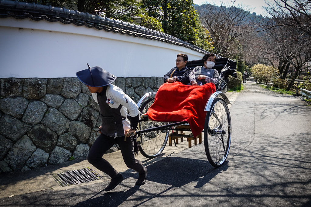 14. По историческим районам Киото можно кататься на вот такой рикше. Это недешёвый вид транспорта, которым пользуются в основном состоятельные пожилые туристы.