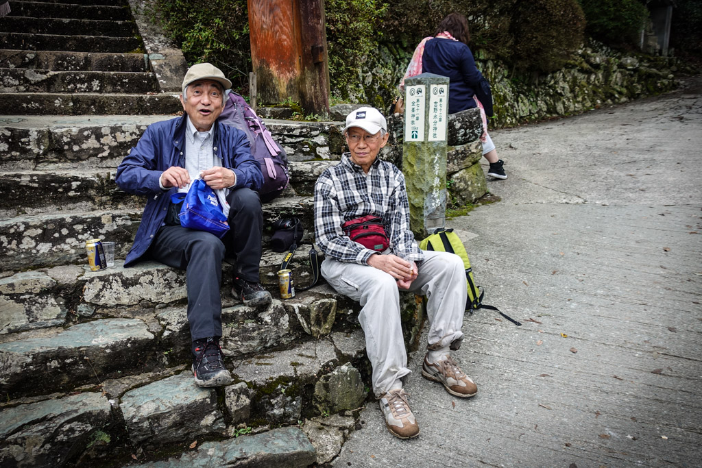 2. Дедушки устроили привал с пивом. Вообще, у японцев ничего страшного нету в том, чтобы присесть где-нибудь на обочине и выпить.