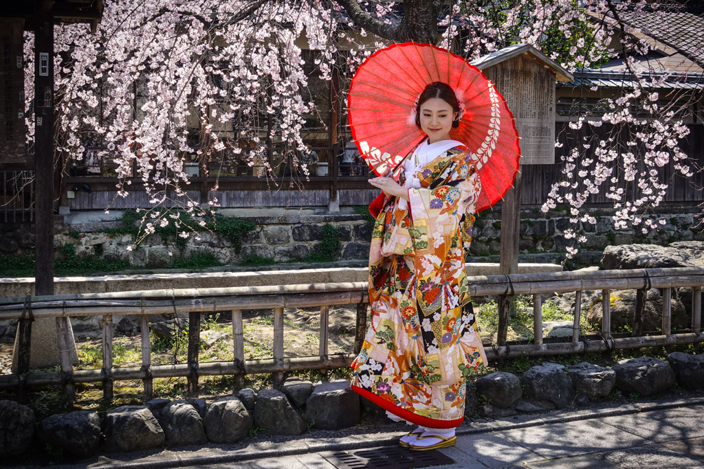 На самом деле это никакие не гейши, а просто туристки - многие из них даже не японки. Девушки со всей Азии съезжаются в Киото, чтобы пофотографироваться здесь в ярких кимоно для туристов. Сами японцы таких броских халатов практически не носят, предпочитая более ненавязчиво окрашенные ткани.