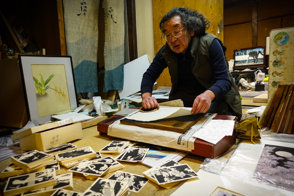 Используя разноцветные чернила и дополняющие друг-друга деревянные плиты можно таким образом "печатать" цветные картинки - это искусство было популярно ещё при сёгунах, когда таким образом производили первые порнографические картинки.