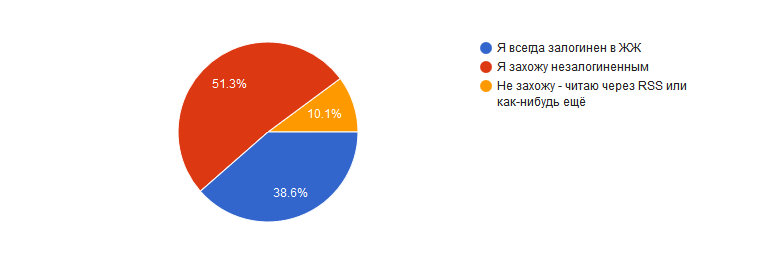 Я специально провёл тогда опрос, чтобы понять, какой процент читателей заходит без ЖЖ-логина, и оказалось, что таких больше половины!