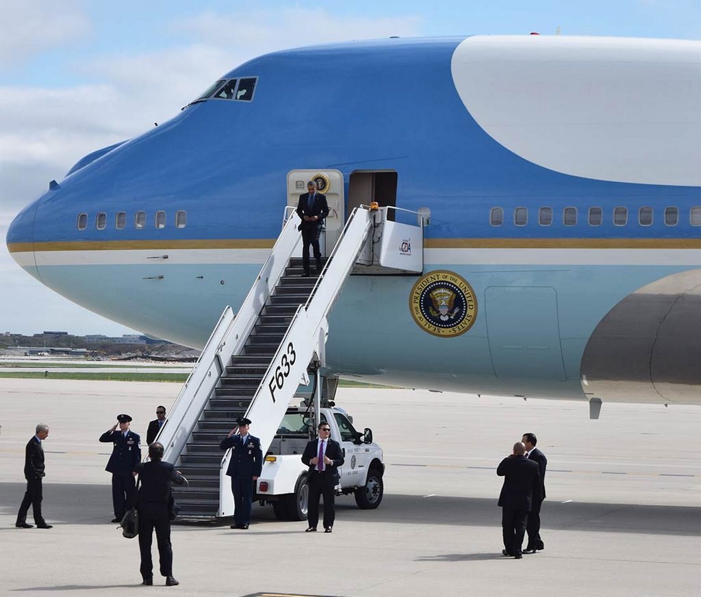 Как только он заходит внутрь, дверь самолёта закрывают, и он взлетает. Все, кто летит вместе с ним должны к этому моменту уже быть на борту. Это самолёт ждёт президента, а не президент ждёт самолёт.