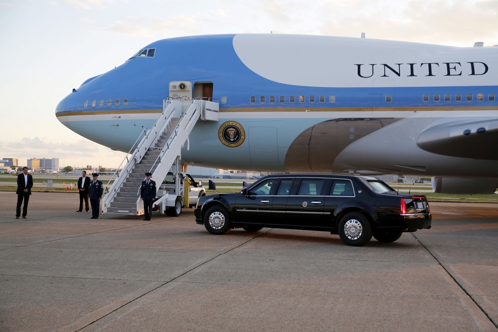 10. Как я уже сказал, время президента очень дорого. Поэтому он всегда последний, кто ступает на борт самолёта. Бронированный лимузин подвозит его прямо к трапу.