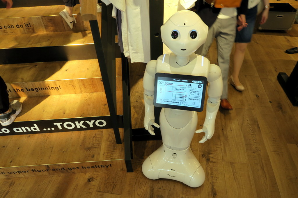 4. Ещё один искусственный человек. Правда этот поменьше - всего около метра ростом. Япония впереди планеты всей по внедрению роботов. Тут они появляются во всех магазинах, продают мобильные телефоны, и помогают людям ориентироваться в отделах универмагов. Этот славный малый подсказал мне, где туалет. Жалко, что по-английски он не говорил, зато у него на груди была отличная карта.