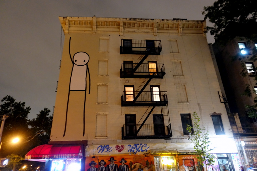 13. Ну и немного стрит-арта. Конечно можно целый отдельный пост было сделать со стрит-артом Нью Йорка. Ведь улицы города можно считать одной большой галереей, с постоянно меняющимися экспонатами. Но это мы оставим на другой день. Сейчас только три работы. Буквально сегодня, гуляя по Манхэттену увидел этого милого человечка на доме.