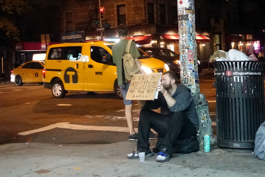 11. Каждый зарабатывает как умеет. "Слишком уродлив для проституции. Помогите, чем можете," написано на плакате у этого малого. Ну, хоть с юмором подошёл к вопросу.