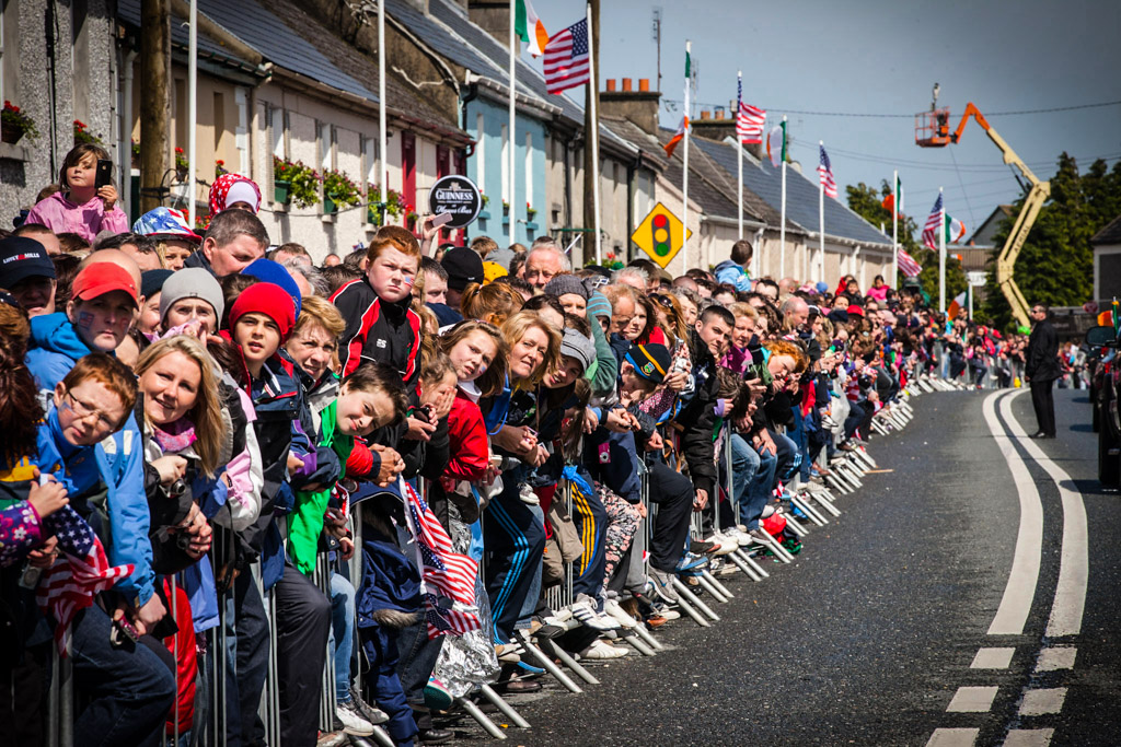 3. Все жители города выстроились вдоль главной улицы, чтобы поприветствовать президента-ирландца. Наверняка ещё из соседних деревень тоже народ подтянулся. Часто ли такое бывает, чтоб в самую дыру приехал глава сверхдержавы?