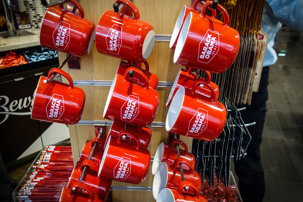 9. В магазинчике в качестве сувениров продаются кружки с большой надписью "Барак Обама", под которой мелкими буквами написано "Плаза".