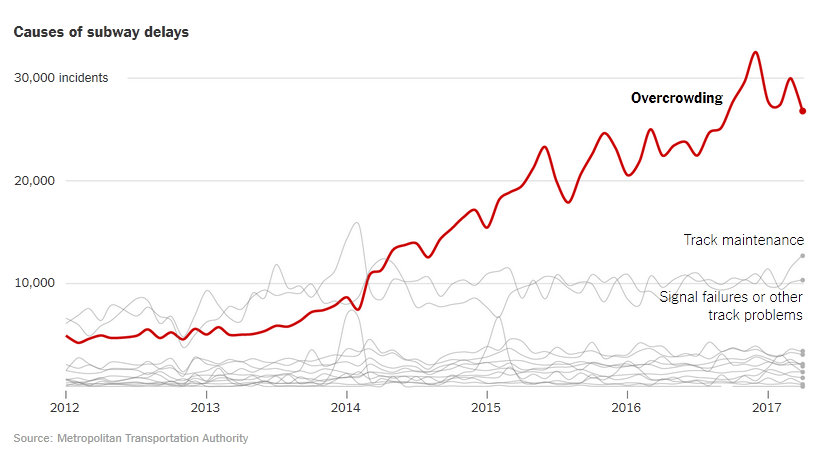 Разумеется, из-за этого толпы только растут, а задержки только усугубляются. Решить эту проблему не так легко - хоть система, контролирующая расстояние между поездами метро уже давно устарела, её модернизация обойдётся городу в миллиарды долларов, и займёт не одно десятилетие.