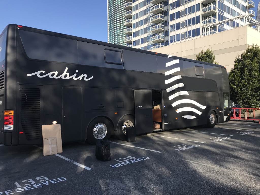 07. Хозяева позиционируют Cabin именно как отель на колёсах (а не как ночной автобус). Цена у него соответствующая - $115 в одну сторону. Для автобуса это дорого (даже авиабилет можно вдвое дешевле найти) а вот для отеля - в самый раз. Чтобы смягчить кусачесть такой цены, бизнесмены делают спальную ячейку максимально комфортной. Тут на каждый рейс стелют свежее бельё, дают бесплатно бутылку воды, вечером чай, утром кофе, и даже беруши. При этом места всё же не очень много, и всю дорогу вас отделяет от остального автобуса небольшая шторка. Зато в автобусе есть вай-фай, и розетки.