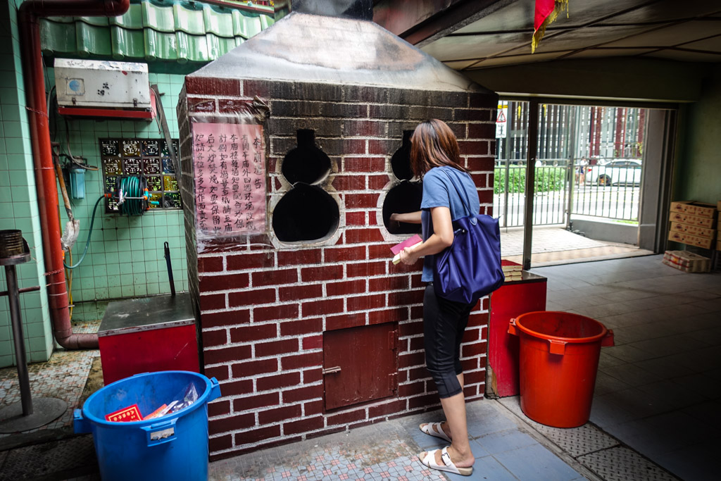 Так как храм китайский, на его территории находится печь для сжигания ритуальных денег - это для китайцев такой Western Union в загробный мир к мёртвым родственникам. Здесь всё очень утилитарно, без лишних украшений.