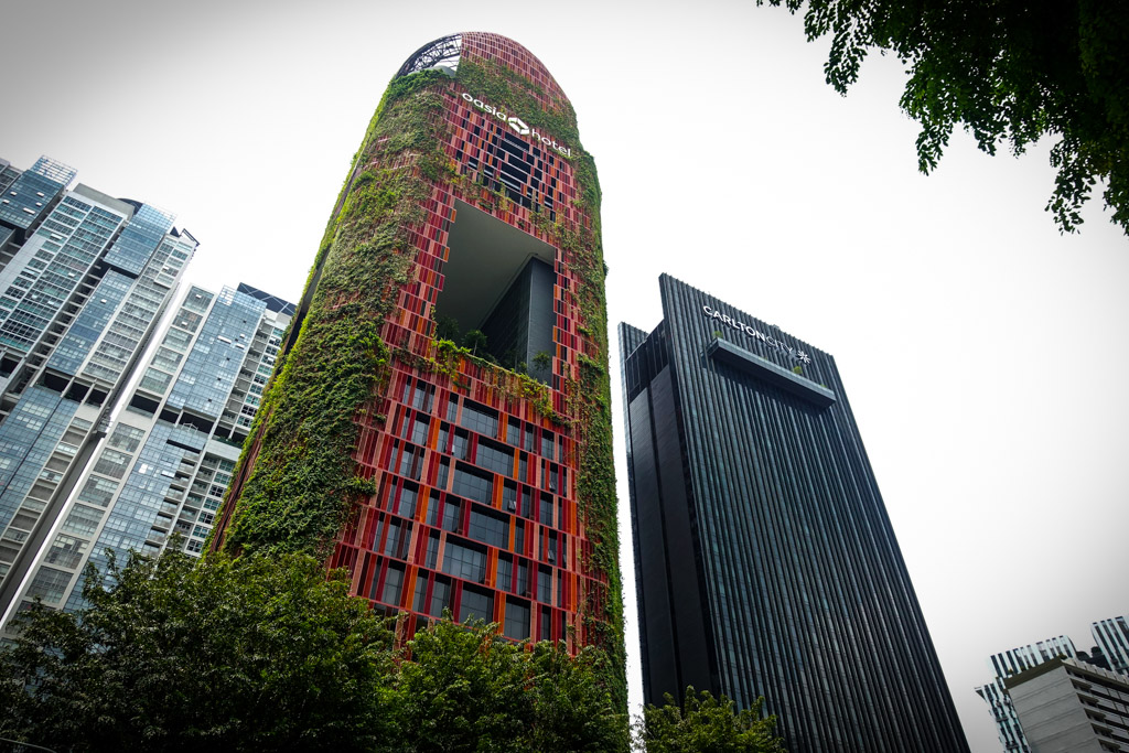 Не смотрите, что этот храм похож на лачугу - он на самом деле находится в сердце делового района Сингапура. На его крыше пёстрые узоры, напоминающие стилистику Даосизма, о котором мне рассказывал Владимир Владимирович в Тайване. Чтоб вы понимали, насколько центрально он стоит, вот какие здания находятся через дорогу от него: