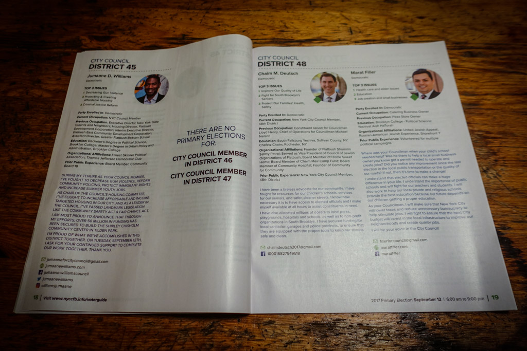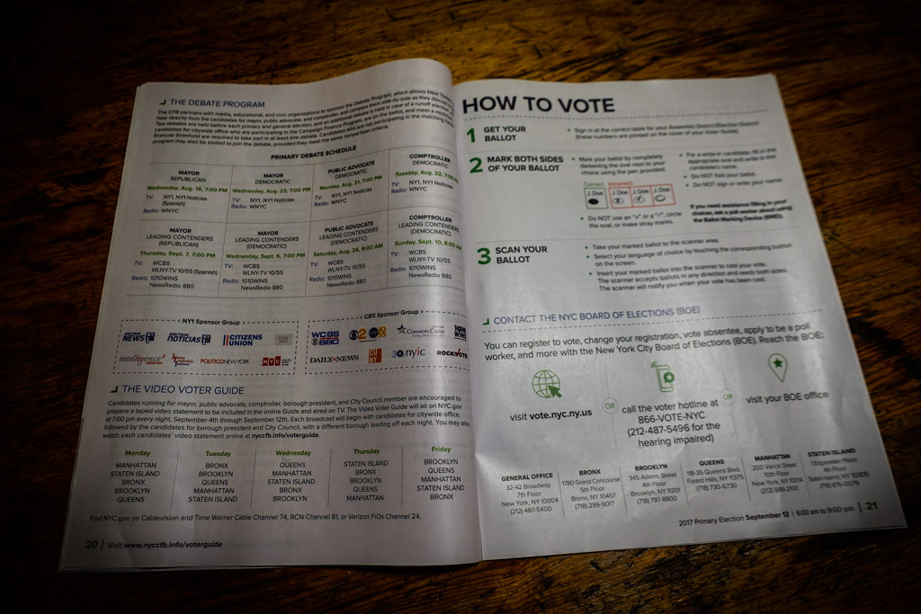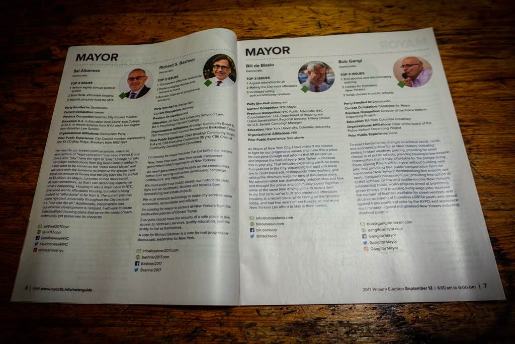 3. Внутри я нашёл ответы как раз на те вопросы, которые меня мучили:кто виноват, и что делать каких чиновников мы будем выбирать, и кто же наши кандидаты? Главные выборы в этом году - на пост мэра города. Трудно поверить, но прошло уже почти четыре года с тех пор, как Блумберг завершил свой третий срок, и сейчас жители Нью Йорка готовятся оценить результаты творчества мэра Билла ДиБлазио на избирательных участках. Примечательно, что у него есть оппоненты на демократических праймериз (и их несколько!) Правда их шансы на победу невелики, так как при низкой явке, праймериз обязательно выиграет кандидат от истеблишмента, коим ДиБлазио несомненно является.